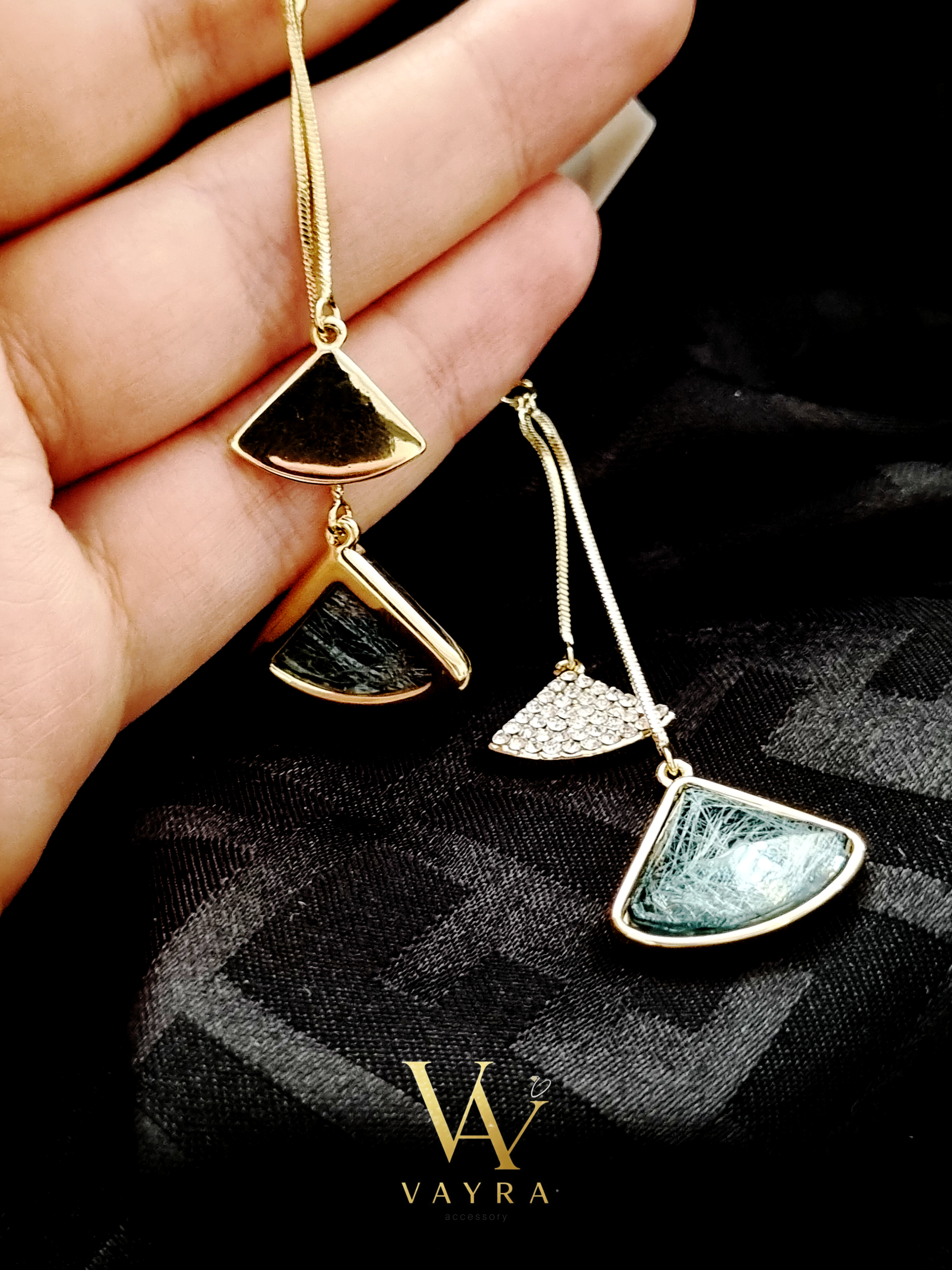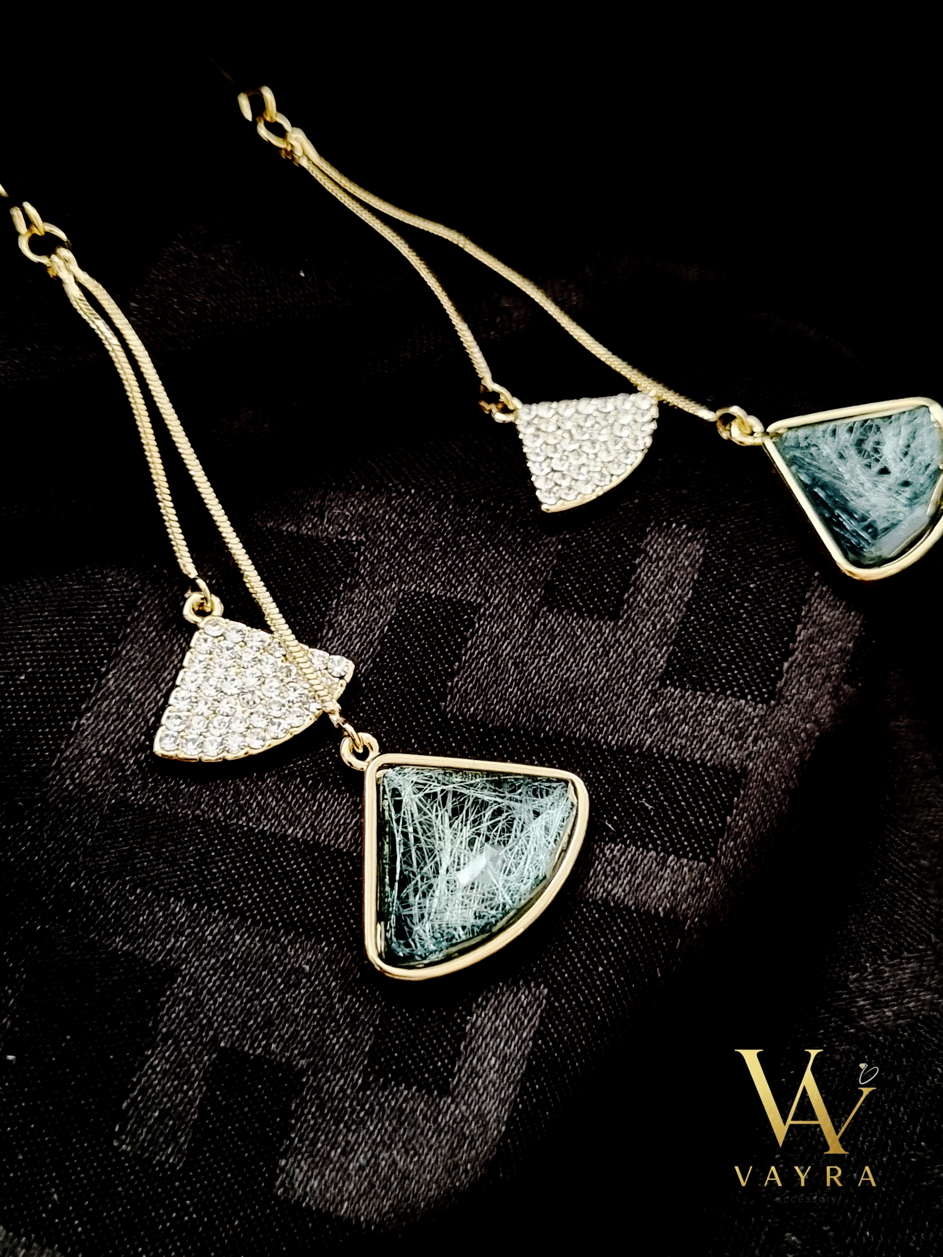 زنجیر طلایی و سنگ سواروسکی سبز یشمی